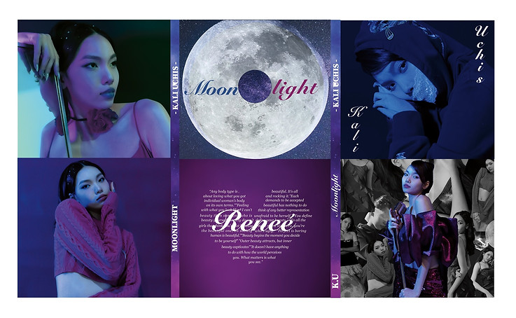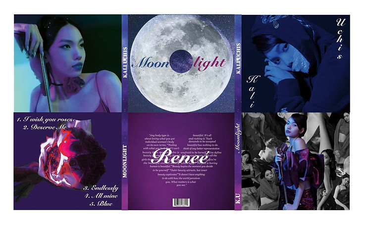 In this draft, we added the strips, changed the word “Moonlight” to “Reneé” in the heart. We also find out the way to remove the templates of the digipak which makes the digipak more professional without all those grids.